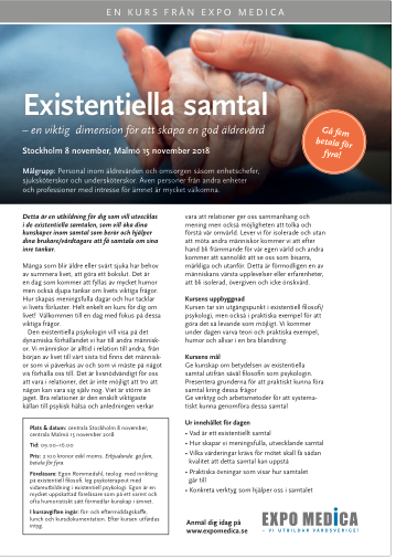 Ge kunskap om betydelsen av existentiella samtal utifrån såväl filosofin som psykologin.