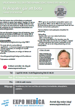 Den här kursen visar på förståelse av psykopati som hittills är nästan helt okänd i Sverige. En del av denna har inte förmedlats skriftligt eftersom man har fruktat att informationen skulle kunna komma att användas för att manipulera behandlare och behandlingssystem. Det som förmedlas bygger inte på forskning, utan endast på kliniska erfarenheter och nästan allt är praktiskt inriktat, konkret och direkt användbart i behandlingen.
