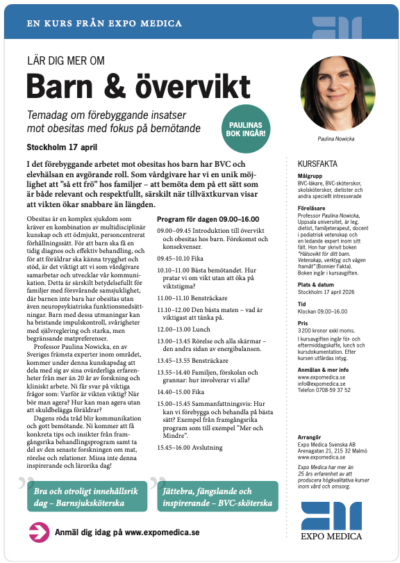 Professor Paulina Nowicka, en av Sveriges främsta experter inom området, kommer under denna kunskapsdag att dela med sig av sina ovärderliga erfarenheter från mer än 20 år av forskning och kliniskt arbete. Ni får svar på viktiga frågor som: Varför är vikten viktig? När bör man agera? Hur kan man agera utan att skuldbelägga föräldrar?